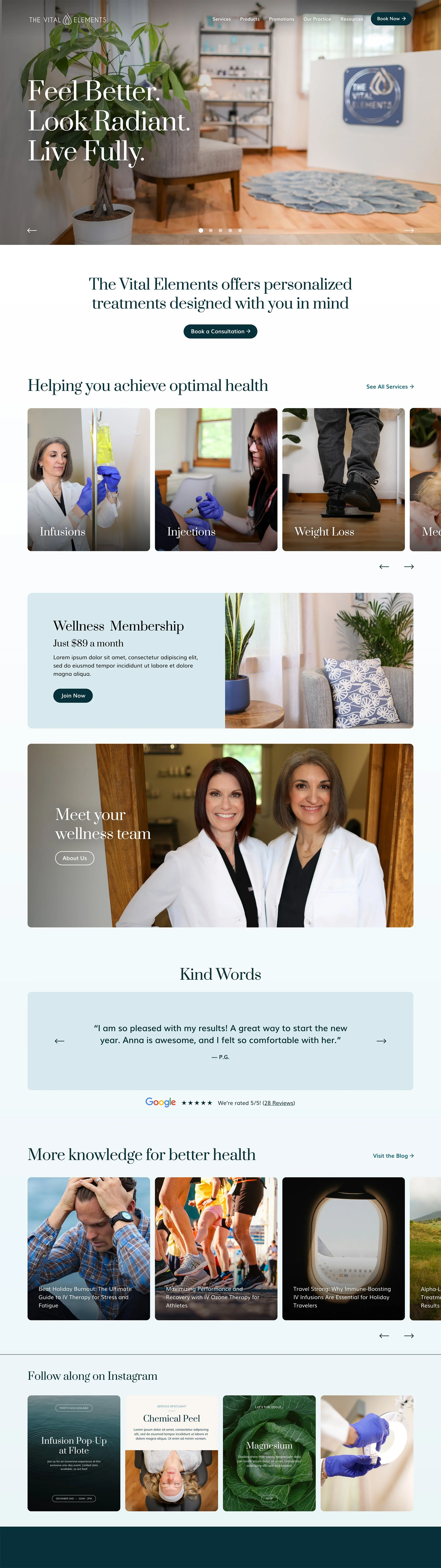 In early 2025, The Vital Elements team approached me to help refresh their brand. Since starting in 2019, their business has matured and they wanted to reposition their brand to better focus on their high-end clientele. In addition to branding, I collaborated with their website developer on a refreshed web design, and created social media templates to make social marketing easy.
